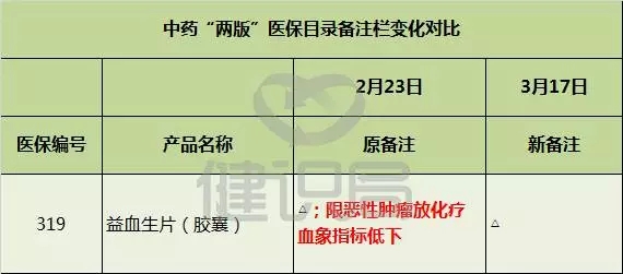 附:2.23版與3.17版醫(yī)保目錄備注欄變化對比表(中藥部分)