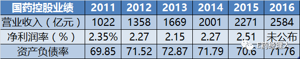 另一個不可忽視的數據則是其居高不下的資產負債率,根據業績公告,2016年國藥控股資產負債率已高達71.76%。