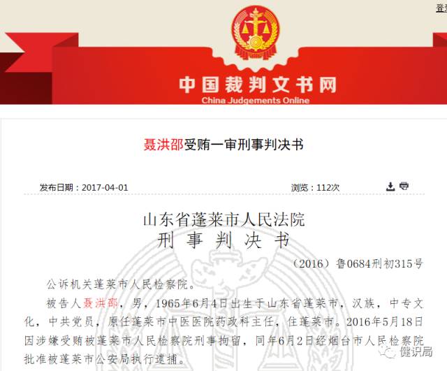 該文稱,蓬萊市人民檢察院指控,被告人聶洪邵在任蓬萊市中醫醫院藥政科主任期間,利用職務上的便利,在蓬萊市中醫醫院藥品采購過程中,于2010年至2016年4月期間,收受賄賂。包括山東康諾盛世醫藥有限公司、山東瑞康醫藥有限公司、煙臺海正醫藥有限公司(山東科倫煙臺分公司)、煙臺藥材采購供應站藥品分公司、煙臺藥材采購供應站、煙臺藥材采購供應站醫藥商城等6家醫藥商業公司被卷入。