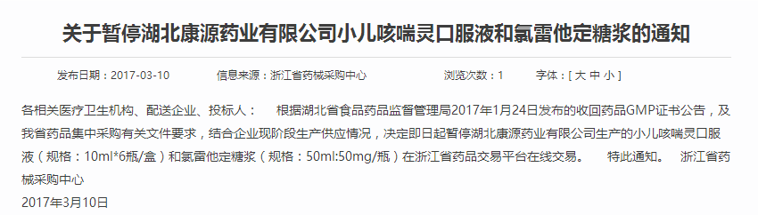 3月22日,浙江省藥械采購中心發布公告,稱根據國家和省食品藥品監督管理部門公布的飛行檢查通報等有關文件通知,要求涉事企業就本企業涉及產品的GMP認證情況及其質量問題等情況進行核查,并于3月28日前將書面說明材料反饋至省藥械采購中心。