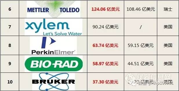 2017年全球儀器公司市值TOP10排行榜