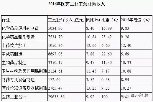 今日,工信部發布《2016年醫藥工業主要經濟指標完成情況》。