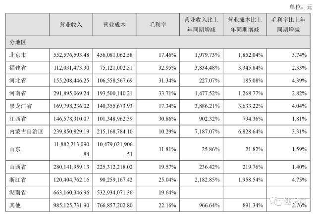 目前,瑞康醫藥在山東省外的業務發展十分順利,尤其是在黑龍江、內蒙古、浙江、福建等省的業務增長都超過2000%,而內蒙古的增長率最高達到了6972.2%。