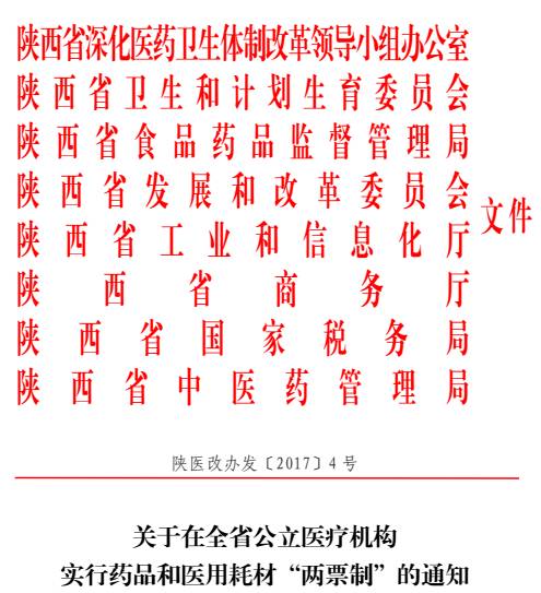 陜西藥品+耗材兩票制細則正式公布 2017-04-26 醫藥云端工作室