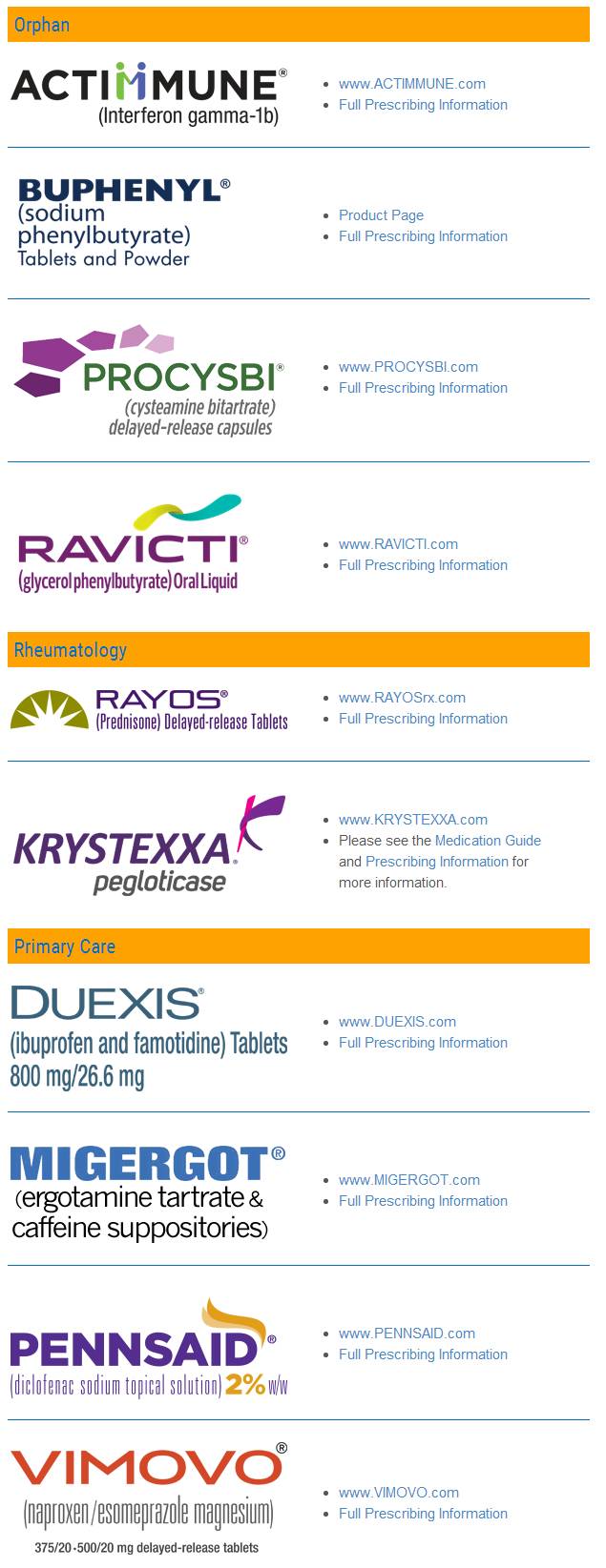 Horizon Pharma的產品投資組合