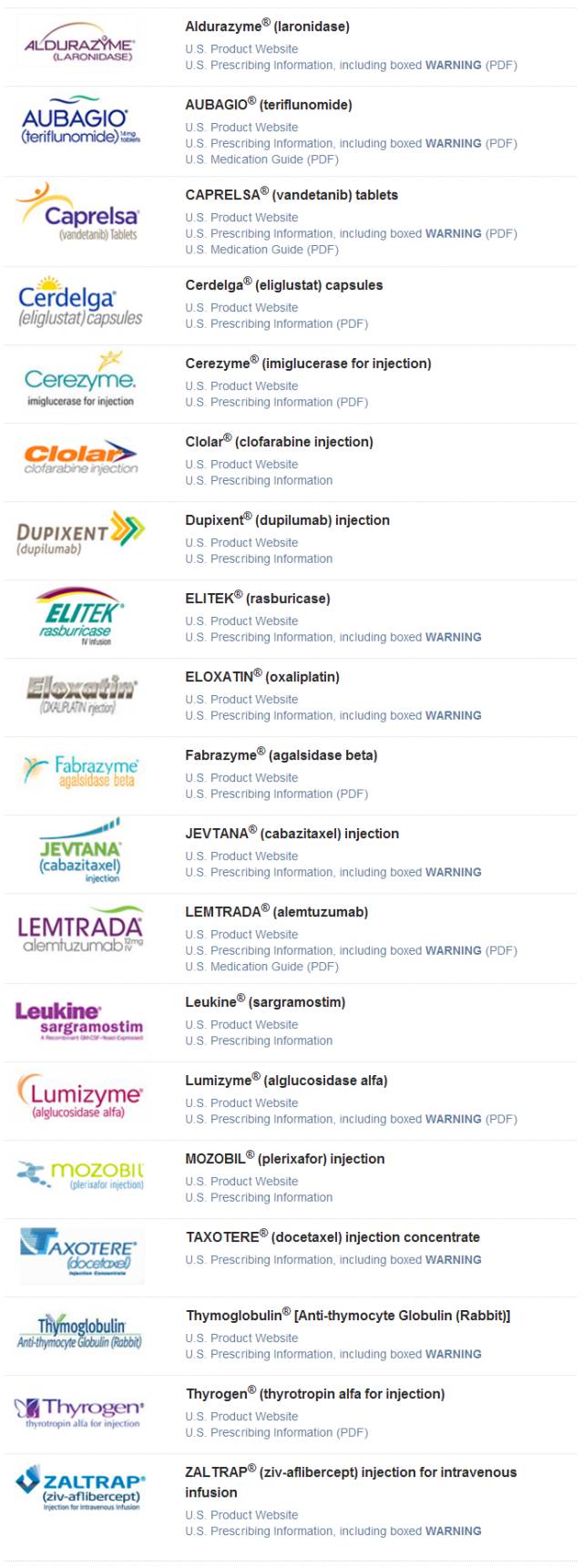 Sanofi – Genzyme的產品投資組合