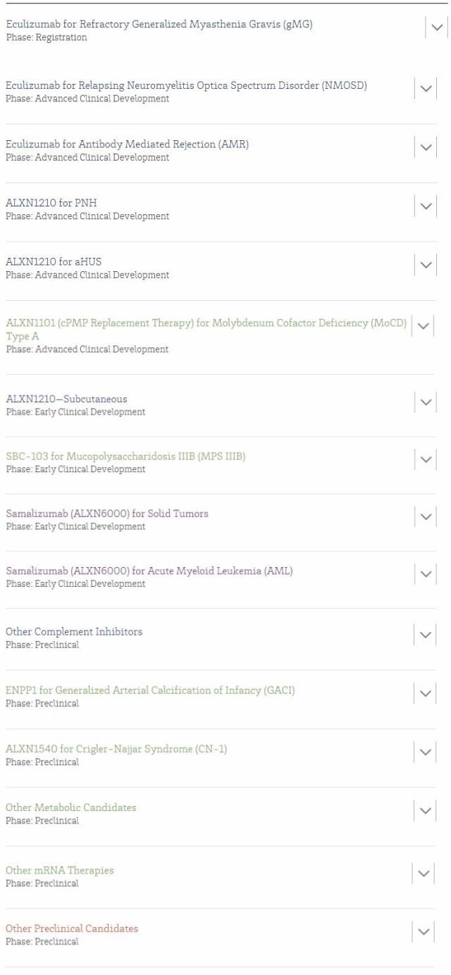 Alexion的產品管線