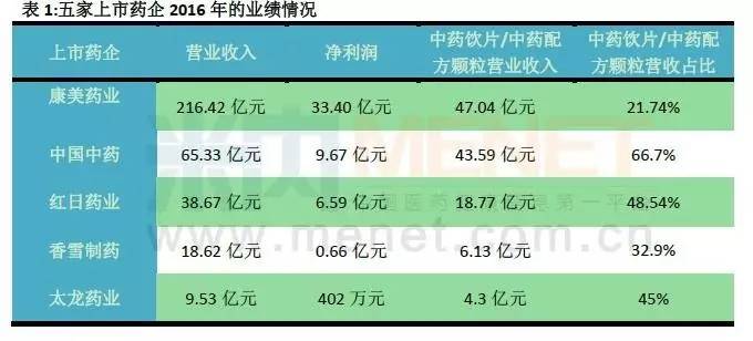目前我國市場上,中藥飲片或中藥配方顆粒銷售規模較大的上市藥企分別有康美藥業、中國中藥、紅日藥業、香雪制藥、太龍藥業。康美藥業是中藥飲片的龍頭,而中國中藥則是中藥配方顆粒市場的主導企業,兩家藥企2016年在這個領域的營業收入均突破40億元。