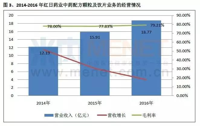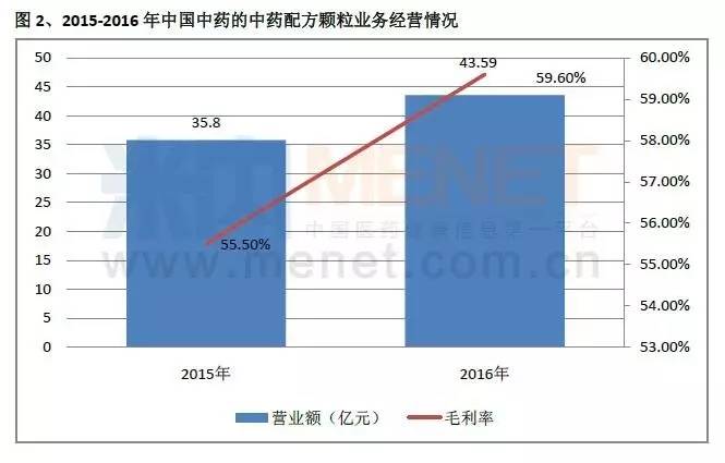 最近兩年,該公司的中藥配方顆粒業務均取得了不俗的成績,2016年突破了40億元的關口,毛利率也上漲至59.6%。中國中藥表示,天江藥業營業額增長勢頭良好,得益于國家政策支持中藥的發展,中藥配方顆粒參照中藥飲片的管理辦法,醫保覆蓋區域的增加,以及公立醫院保留對配方顆粒銷售的加成;其次,天江藥業以直銷和代理商兩種模式快速拓展市場,有效地掌握終端,全方位進行渠道維護,在全國各省份已形成比較完善的醫院覆蓋;第三,天江藥業提供給醫院使用的配藥機顯著增加,中藥配方顆粒臨床上量和營運效率大幅提高。