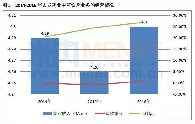 太龍藥業的中藥飲片業務集中在全資子公司桐君堂藥業,產品品種多達700多種,1100多個品規。最近三年,該公司的中藥飲片銷售均保持在4億元左右,2016年營收同比上升0.96%,主要因為公司向中南、西南區域拓展中藥飲片銷售市場。