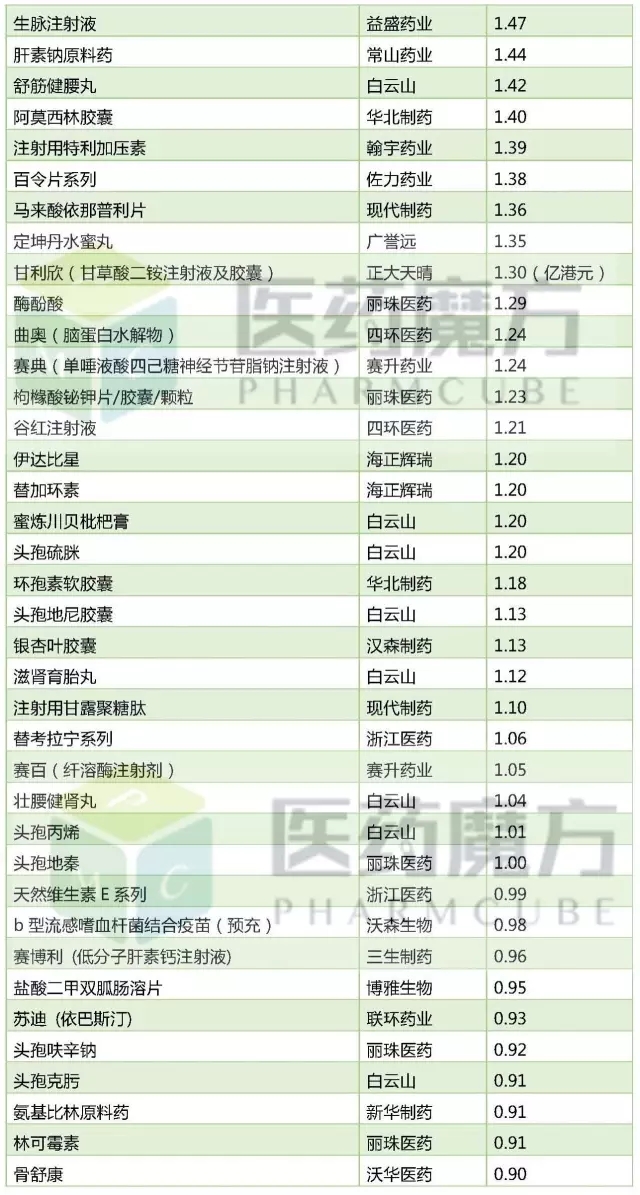 2016年銷售額過億的國產藥品!