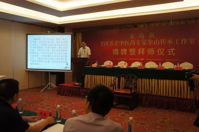 本次儀式由縣中醫醫院蔣杰峰院長主持,市衛計委章國平主任、市中醫藥管理局徐偉明主任、縣衛計局陳淑萍局長等領導出席儀式現場并致辭祝賀,各位領導對于縣中醫院積極推動本次董幼祺名老中醫藥專家傳承工作室的成立表示了充分的肯定,同時也向董幼祺主任及所有師承學員送去了溫暖的祝福并提出了殷切的希望,希望中醫藥文化能在以老帶新的路程上多出人才、出好人才,讓中醫文化成為影響力遍及世界的醫學文化,為造福我縣人民群眾再做貢獻。活動現場,全縣各醫療機構主要負責人、全縣中醫規培學員列席參加。
