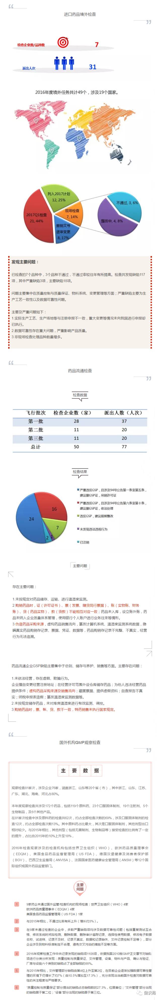 5月31日,國家食品藥品監(jiān)督管理總局(簡稱“CFDA”)發(fā)布《2016年度藥品檢查報告》,闡述了2016年藥品檢查情況及檢查發(fā)現(xiàn)的主要問題,分析了各類檢查發(fā)現(xiàn)的薄弱環(huán)節(jié)和潛在質(zhì)量風(fēng)險。同時,藥監(jiān)總局確定了2017年國家藥品檢查的方法、重點,擬對466家藥品生產(chǎn)企業(yè)進行檢查。