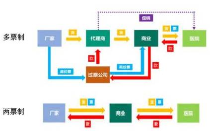 而在國家規定的兩票制情況下,生產企業到醫藥商業流通公司只能開一次發票,這意味著回款是直接從商業公司返還到生產企業,而代理商的各種利益要通過生產企業來實現利益再分配,至于利益分配是不是合法暫且不論。