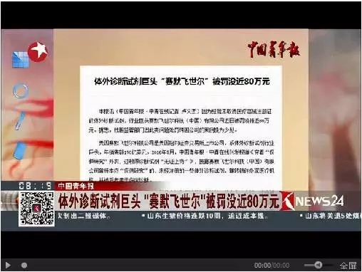 美國賽默飛世爾科技公司是美國紐約證券交易所上市公司,系體外診斷試劑行業巨頭,年銷售額170億美元。2016年5月,中國青年報·中青在線刊發報道《穿著“僅供研究”外衣,過敏原診斷試劑“無證上崗”》,披露賽默飛世爾科技(中國)有限公司曾將本應“僅供研究”的、未經注冊的一些體外診斷試劑,輾轉銷往多家醫療機構,并被后者用于臨床診斷。