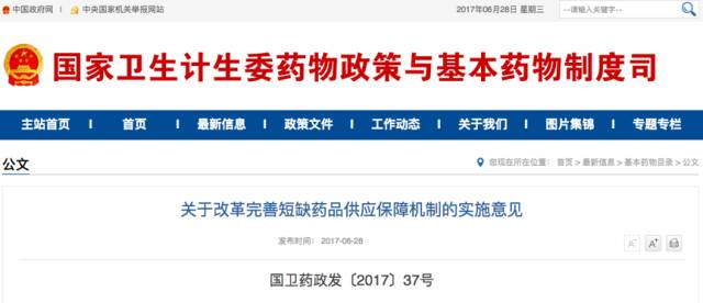 昨日(28日),國家衛計委、國家發改委、工信部、財政部、人社部、商務部、國務院國資委、國家工商總局、國家食藥監總局等九部門聯合發布《關于改革完善短缺藥品供應保障機制的實施意見》(國衛藥政發〔2017〕37號)(下稱《實施意見》),宣布九部門聯合管理短缺藥的系列措施。