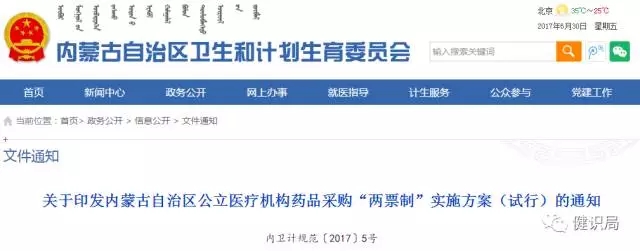 內蒙古自治區公立醫療機構藥品采購“兩票制”實施方案(試行)