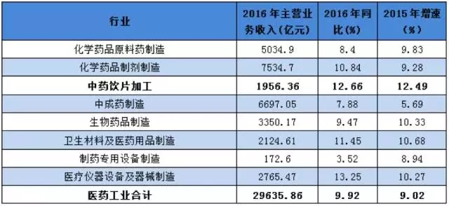 根據工信部數據,中藥飲片除2016年略低于醫療儀器設備及器械制造子行業外,主營業務收入在2015-2016年的醫藥工業各大子行業中的增速均是最高的。