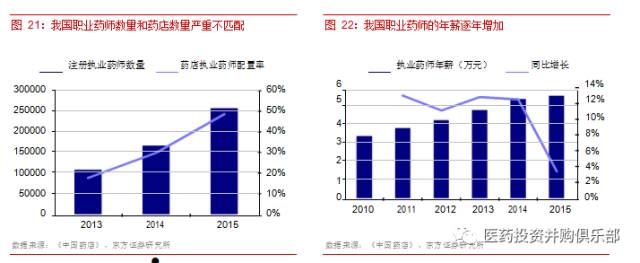 在全國執(zhí)業(yè)藥師總數(shù)有限的情況下,連鎖藥店更具競爭優(yōu)勢。目前來看,單體店每家需配備 1-2名執(zhí)業(yè)藥師,而連鎖藥店可 5-8 家店面共用 1 名執(zhí)業(yè)藥師,這大大降低了連鎖藥店的經(jīng)營成本。以2015 年全國執(zhí)業(yè)藥師平均年薪 5.56 萬元計(jì)算,假設(shè)連鎖藥店 5 家共用 1 名藥師,單體店 1 家 1名藥師,則每家連鎖藥店的平均人力成本比單體店減少 4.45 萬元。全國藥店平均單店?duì)I業(yè)收入約90 萬元(以 2015 年全國藥店數(shù)量 44.8 萬家和收入規(guī)模 4045 億元計(jì)算),1 名藥師的薪酬占比為 6.2%(5.56 萬元/90 萬元),單體店將比連鎖店高出 4.9 個(gè)百分點(diǎn)的費(fèi)用率(4.45 萬元/90 萬元)。面對職業(yè)藥師緊缺的現(xiàn)狀,職業(yè)藥師的薪酬將可能進(jìn)一步提高,連鎖藥店的成本優(yōu)勢更加明顯。