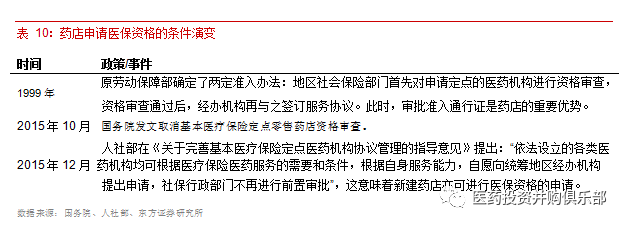 此前,醫(yī)保政策規(guī)定,零售藥店需要在正常經(jīng)營若干年后才具備申請醫(yī)保定點(diǎn)資格,這對新建門店參與競爭形成了資質(zhì)門檻。
