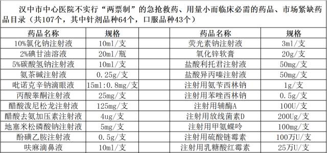 7月17日,陜西漢中市中心醫院發布《關于部分不實行“兩票制”的急搶救藥、用量小臨床必需的、市場緊缺品種目錄公示》,對107個可不執行兩票制的品種進行了公示。