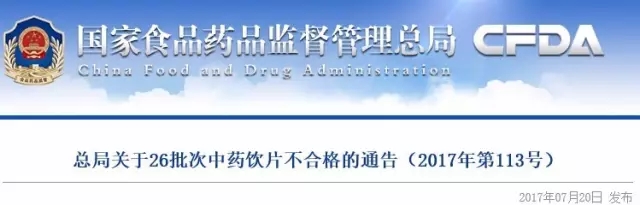 7月20日,國家食藥監(jiān)總局發(fā)布公告,26批次中藥飲片抽檢不合格。