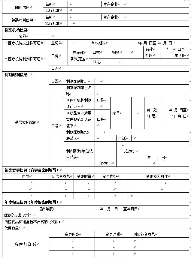 附件:醫療機構應用傳統工藝配制中藥制劑備案表
