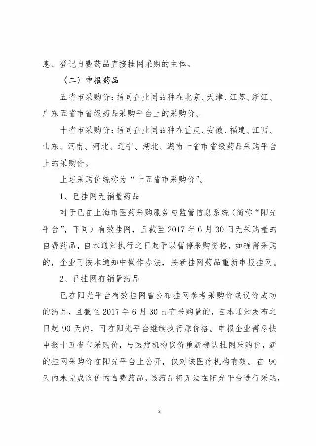 2、所有在本市銷售的自費藥品掛網采購價必須由藥品生產企業通過上海市醫藥采購服務與監管信息系統內詢價議價系統與醫療機構按要求議定成交價后,方可進行銷售。