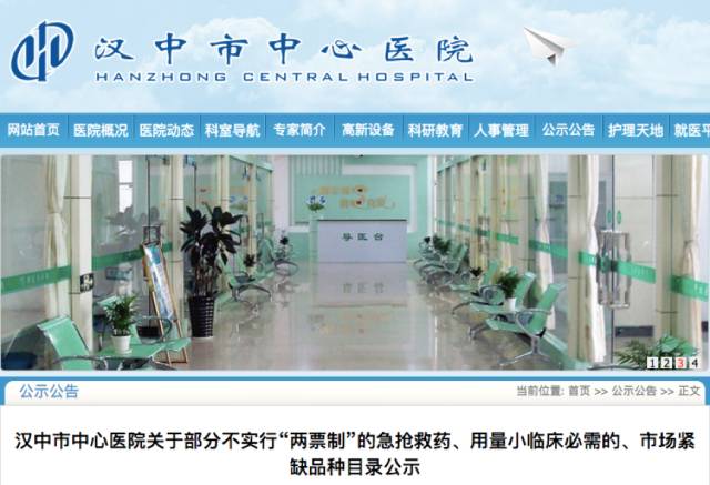 日前,陜西省漢中市中心醫院發布《關于部分不實行“兩票制”的急搶救藥、用量小臨床必需的、市場緊缺品種目錄公示》,宣布對107個(針劑品種64個,口服品種43個)不實行“兩票制”的品種進行公示。