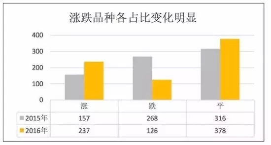 2016年,我國中藥材流通市場常見的741個中藥材流通 品種中,237個品種價格上漲,316個品種價格持平,268個品種價格下跌。與2015年相比,漲價品種和持平品種數量明顯增加,跌價品種數量大幅減少,品種行情總體向好。