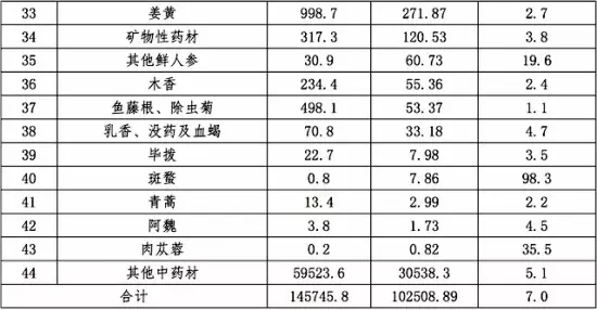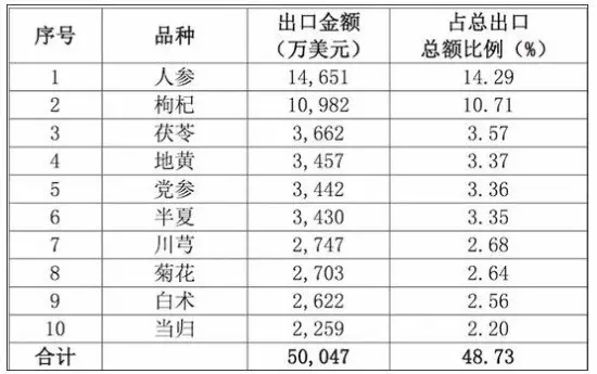 (二)中藥材出口總額基本持平。