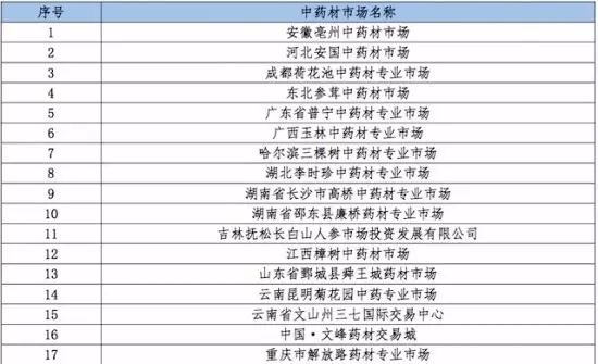 7.參與統計的17家中藥材市場