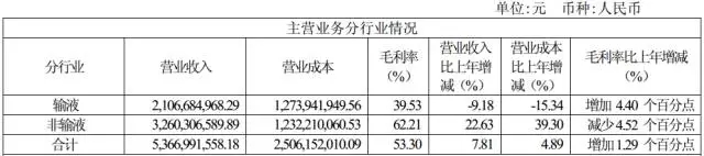 2016年大輸液板塊營(yíng)業(yè)收入超過21.07億元,占整個(gè)企業(yè)銷售收入的40%。
