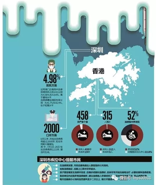 據香港衛生署出版的網上周刊《傳染病直擊》報道,今年的香港夏季流感爆發時間由往年的7到9月提前至5月,截至7月15日的過去一周,流感的陽性檢測率達到最高峰40.86%,超過了自2015年冬季38.71%的最高值。