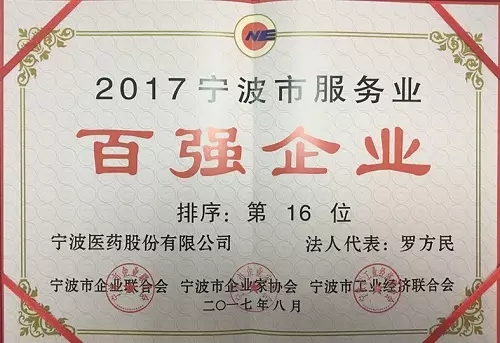 寧波醫(yī)藥股份有限公司位列2017年寧波市服務業(yè)百強第十六位