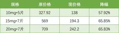 不同規(guī)格降價幅度(單位:元人民幣)