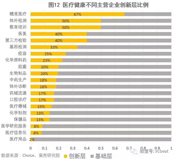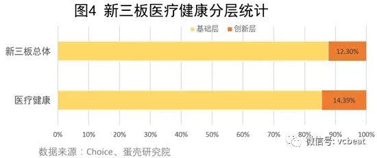 進(jìn)入創(chuàng)新層的醫(yī)療健康概念企業(yè)數(shù)量為80家,占醫(yī)療健康概念企業(yè)總量的14.39%,占新三板創(chuàng)新層企業(yè)總數(shù)的6.97%,而新三板創(chuàng)新層企業(yè)總數(shù)占新三板上市企業(yè)總量比值為12.30%。