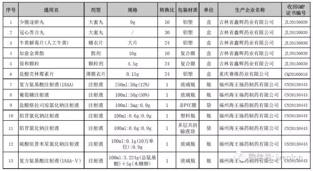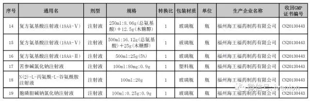 收回藥品GMP證書涉及產品目錄