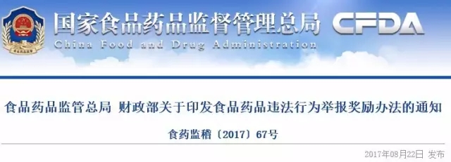 附:食品藥品監(jiān)管總局 財(cái)政部關(guān)于印發(fā)食品藥品違法行為舉報(bào)獎(jiǎng)勵(lì)辦法的通知