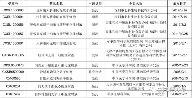 據SFDA藥品審評中心官網的檢索結果,截至目前共受理11個干細胞藥品申報(不含申報后撤消),主要是臍帶和骨髓來源的間充質干細胞注射液,適應癥包括肝纖維化、心梗等。最早的申報可追溯到2004年10月10日中國醫學科學院基礎醫學研究所申報的“骨髓原始間充質細胞”。另外,根據SFDA藥品審批中心藥物臨床試驗登記與信息公示平臺的檢索結果,骨髓原始間充質細胞共開展3項藥物臨床試驗(CTR20132003、CTR20132698、CTR2013202),適應癥包括移植物抗宿主病和急性心梗,最后一項也于2011年完成。但上述11個干細胞藥物申報均未進入審批程序,讓人不禁疑惑接下來十多年發生了什么。