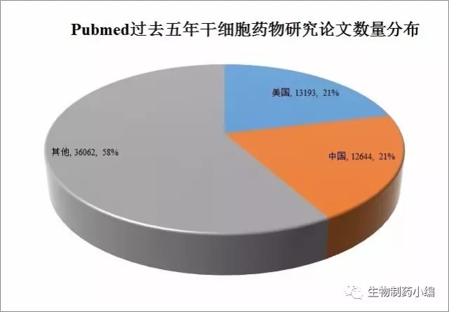 對于再生醫學這樣一個新興領域,中國起步得不算太晚。相比其他領域來說,和國際先進水平的差距較小,某些方向甚至走在世界的前列。從Pubmed的發表論文數量來看,過去5年來(自2017年8月16日往前推),關于干細胞研究的文獻有61899篇,其中屬于美國的有13193篇,中國的有12644篇,比美國略低,占比超過20%。