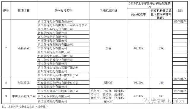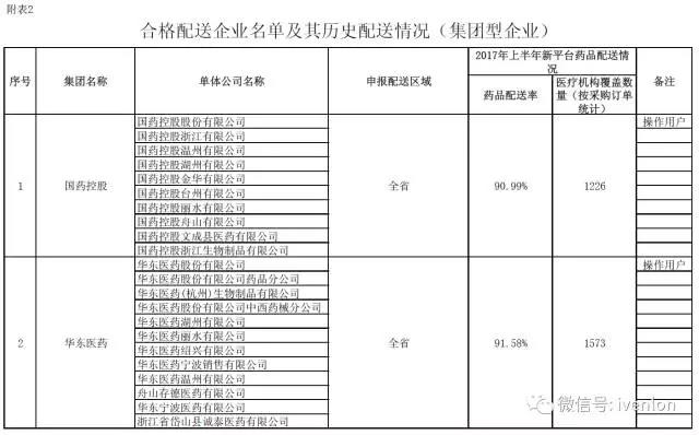 一、公布的合格配送企業(yè)名單中藥品配送率和醫(yī)療機(jī)構(gòu)覆蓋數(shù)量,僅供投標(biāo)人在建立配送關(guān)系時(shí)參考;集團(tuán)型配送企業(yè)名單中標(biāo)注的“操作用戶”為集團(tuán)自行指定的具有操作權(quán)限的代表企業(yè)。