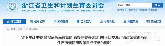 浙江省改革完善藥品生產流通使用政策重點任務