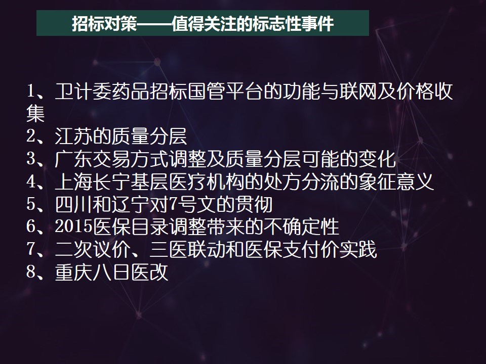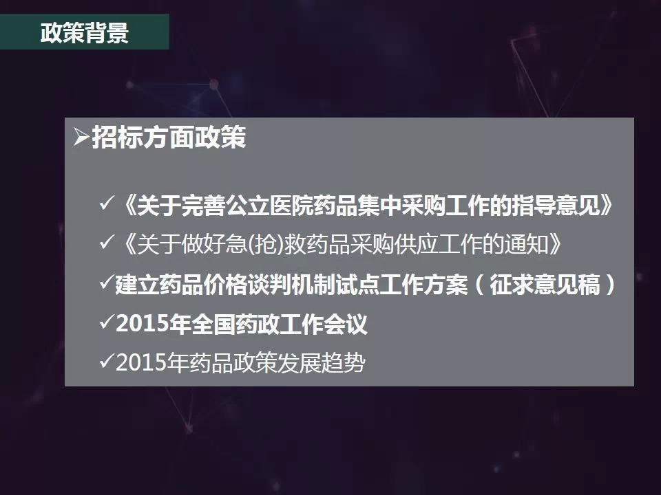 答案之一是醫藥行業進入了寒冬,大家都想在寒冬中抱團取暖,更要找到問題的解決辦法。寒冬表現在政策的嚴苛上,而這其中,各省的招標不斷打壓藥品價格令全行業揪心不已。