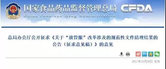 同時(shí),食藥總局起草的《關(guān)于“放管服”改革涉及的規(guī)范性文件清理結(jié)果的公告(征求意見(jiàn)稿)》向社會(huì)公開(kāi)征求意見(jiàn)。規(guī)定于2017年10月29日前,將意見(jiàn)反饋至電子郵箱fzszonghechu@cfda.gov.cn。