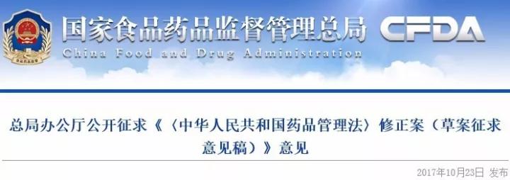 10月23日,國家食藥監總局發布《〈中華人民共和國藥品管理法〉修正案(草案征求意見稿)》。