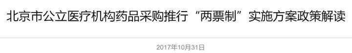 今日(10月31日),北京市發改委發布關于公立醫療機構藥品采購推行“兩票制”實施方案政策解讀文件,進一步厘清了責任和義務,做到生產企業對第一票負責,流通企業對第二票負責,公立醫療機構不得采購不符合“兩票制”的藥品。將藥品企業“兩票制”承諾書、相關資質及市場行為在藥品陽光采購平臺進行公示留痕,接受社會監督。北京方案的目標是通過治理藥品流通環節,凈化藥品流通環境,使藥品價格回歸到合理水平。以下為解讀原文: