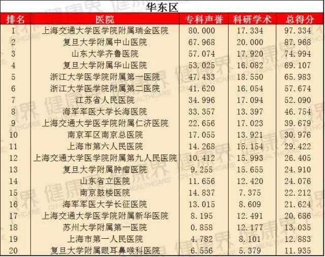 該榜單在2015年首次亮相,就成為最大亮點,并引發廣泛關注。它將東北區、華北區、華東區、華南區等7個區域醫院分別作為獨立單元,評選出各地區醫院綜合實力排名,旨在提高區域醫療水平,同時便于區域民眾詢醫就診。這意味著,看病不一定要去全國最好的醫院,在自己所處區域也能找到好醫院。