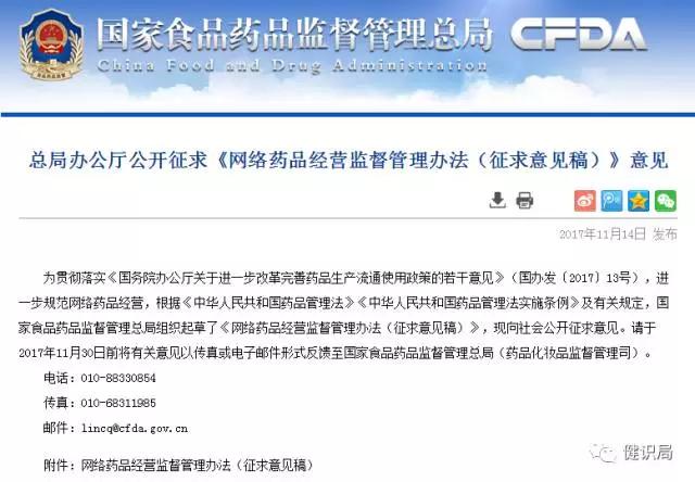今天(11月14日),國家食品藥品監(jiān)管總局(簡稱CFDA)發(fā)布《網(wǎng)絡(luò)藥品經(jīng)營監(jiān)督管理辦法(征求意見稿)》,再次強調(diào)按照“線上線下一致”原則,落實監(jiān)管部門責(zé)任,規(guī)范互聯(lián)網(wǎng)藥品、醫(yī)療器械交易行為。