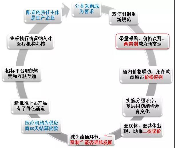 另外,量價齊跌的趨勢需要密切關注。究其原因一是各省市普遍縮小藥品采購目錄,大量的藥品因無法進入目錄而喪失進入市場的機會;二是“準入+采購+銷售”三合一趨勢,藥品的市場準入及招標采購與銷售三個原本斷開的環節,在新的藥品采購方式下幾乎合為一體。
